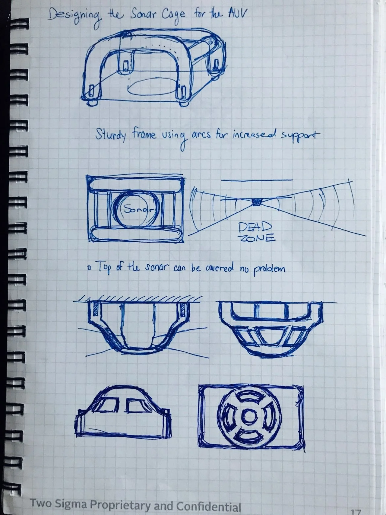 Brainstorm of possible shapes for the new sonar cage